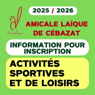 Vous trouverez toutes les activités proposées par l’Amicale Laïque de Cébazat pour la saison 2025-2026, avec le dépliant retraçant activités, les jours des cours et les tarifs.