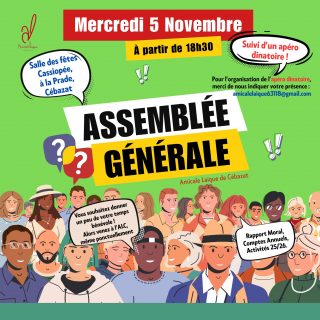 L’Assemblée générale de votre association est un moment de découverte du fonctionnement de notre association, d’échange et de convivialité. Elle se tiendra le mercredi 5 novembre à partir de 18h30...